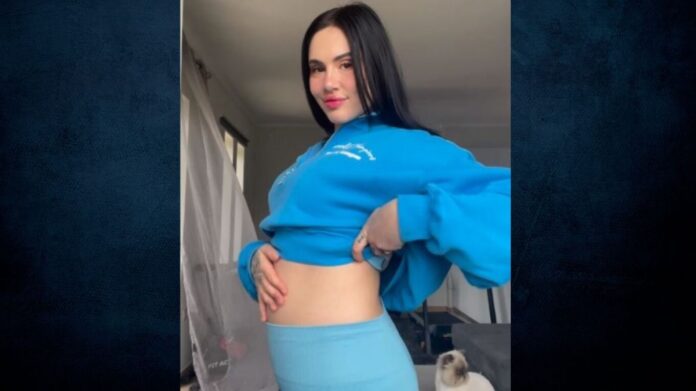 Δημοσίευσε ένα βίντεο, στο οποίο φορά ένα γαλάζιο κολάν και σηκώνει ψηλά το φούτερ της, για να δείξει πόσο έχει μεγαλώσει η κοιλιά της. Στη λεζάντα της ανάρτησής της, προκάλεσε τους διαδικτυακούς της φίλους να μαντέψουν πόσο μηνών έγκυος είναι.