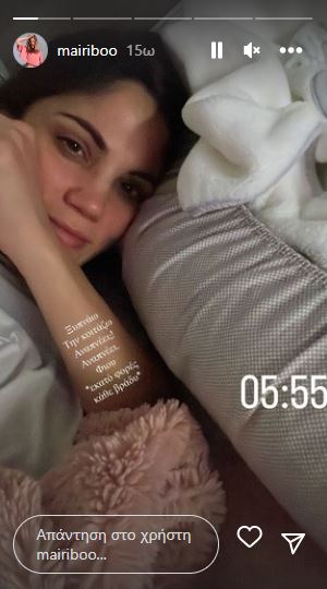 «Ξυπνάω! Την κοιτάζω! Αναπνέει; Αναπνέει! Εκατό φορές κάθε βράδυ», έγραψε η Μαίρη Συνατσάκη, στο instagram story που μοιράστηκε με τους διαδικτυακούς της φίλους.