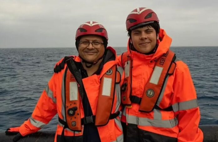 Στη φωτογραφία που τραβήχτηκε λίγη ώρα πριν από το ταξίδι του OceanGate προς το ναυάγιο του Τιτανικού, πατέρας και γιος φαίνεται να ανυπομονούν για το ταξίδι.